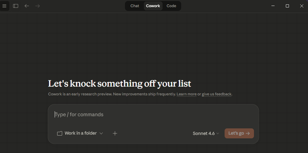 แต่หลังจากผ่านมาได้ 1 วัน แถบ Cowork ก็ขึ้นมาให้ผมใช้งาน โดยที่ผมไม่ได้ทำอะไรเลยครับครับ