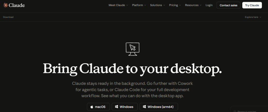 ในการจะใช้ Cowork นั้น เราสามารถสมัครเพื่อใช้งานระดับ Pro ขึ้นไปก่อน จากนั้นก็ให้ Download โปรแกรม Claude Desktop มาจาก https://claude.com/download ตามระบบในคอมของคุณ ไม่ว่าจะเป็น macOS หรือ Windows ได้เลยครับ