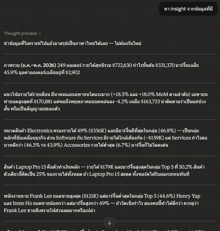 2) ลองให้ Cowork วิเคราะห์หา Insights จากข้อมูลในไฟล์ Excel