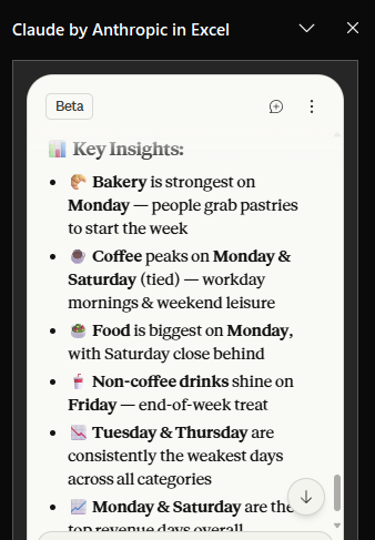 ข้อดีอีกอย่างของ Claude ก็คือ ไม่ใช่แค่สามารถวิเคราะห์เชิงตัวเลขได้ แต่สามารถหา Insight มาแนะนำให้เราได้ด้วยครับ