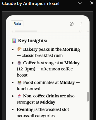 Claude in Excel คือ add-in ของ Microsoft Excel ที่ฝัง Claude ไว้ใน sidebar โดยตรง ช่วยให้เราสามารถพิมพ์แชทกับข้อมูลใน Excel ได้โดยตรงเลย ไม่ต้องเปิดแอปอื่นเหมือนที่ผมเคยวิเคราะห์ Excel ด้วย ChatGPT ครับ